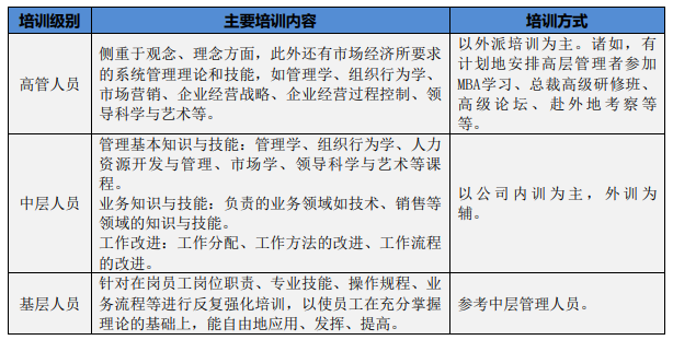為保證準確的識別培訓(xùn)需求、制定并實施培訓(xùn)計劃,公司每年發(fā)放《公司員工培訓(xùn)需求調(diào)查表》,以此收集各部門員工的培訓(xùn)需求,并以此制定培訓(xùn)計劃。依據(jù)總體培訓(xùn)規(guī)劃,公司明確了分級培訓(xùn)體系,分別針對高管人員、中層人員和基層人員確定相應(yīng)的培訓(xùn)內(nèi)容及培訓(xùn)方式,使得培訓(xùn)項目的實施更加符合公司整體戰(zhàn)略發(fā)展規(guī)劃。